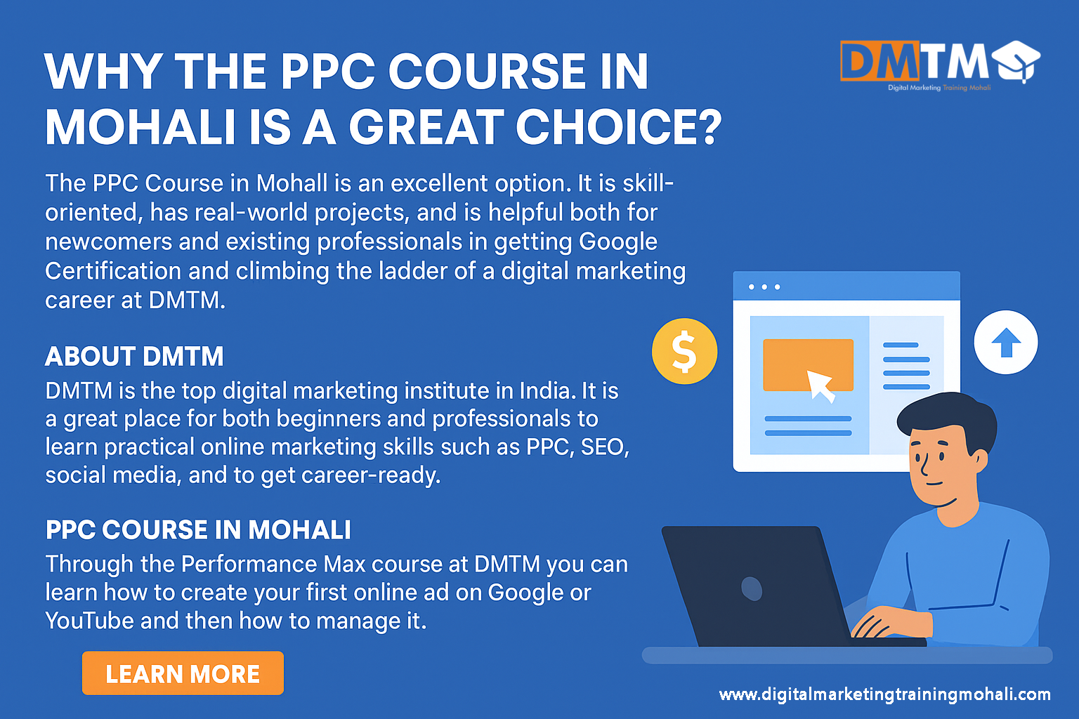 The PPC​‍​‌‍​‍‌​‍​‌‍​‍‌ Course in Mohali is an excellent option. It is skill-oriented, has real-world projects, and is helpful both for newcomers and existing professionals in getting Google Certification and climbing the ladder of a digital marketing career at ​‍​‌‍​‍‌​‍​‌‍​‍‌DMTM.