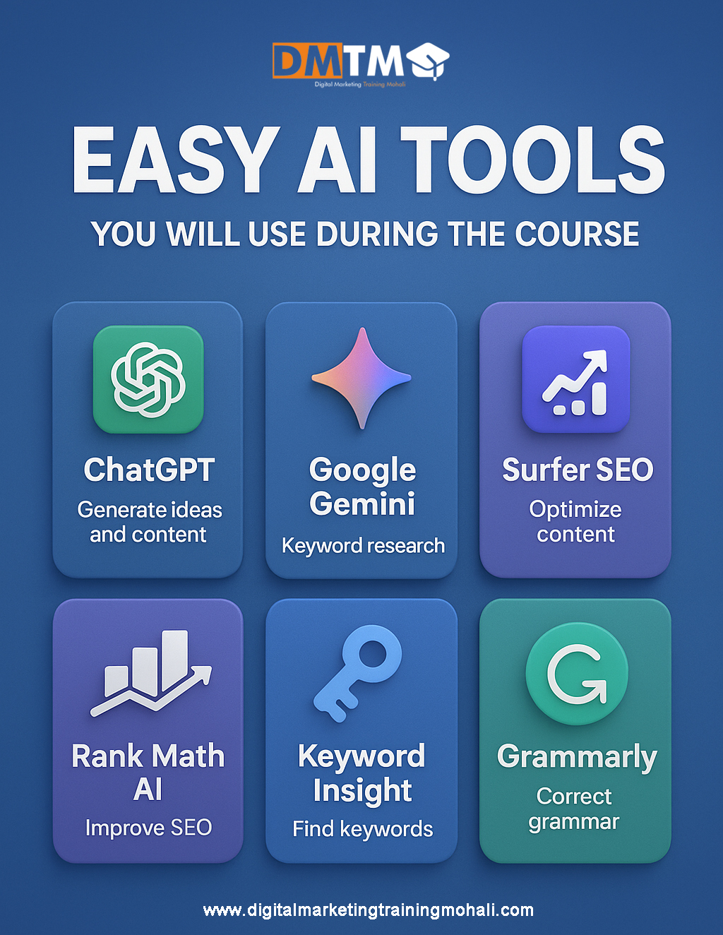 This SEO training is explained in very simple terms, with easy step-by-step lessons. You work on real websites and use AI tools that are friendly for beginners. If you are a complete novice, you can still learn fast and acquire powerful skills through DMTM’s SEO training in Mohali.